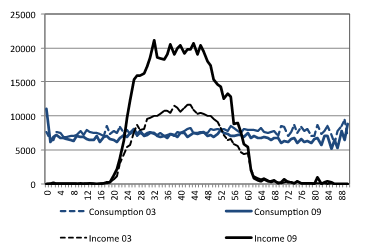 La segunda era moverse en el sentido opuesto. Esto es, modificar los perfiles de consumo e ingreso por cohorte de manera de lograr un patrón de subconsumo que retrase la llegada de las presiones del envejecimiento. El riesgo de esta estrategia se relaciona con un aumento en el ingreso que no es acompañado por las condiciones (básicamente, la inversión en capital humano) para asegurar la sostenibilidad de ese aumento.