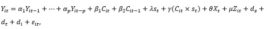 El modelo de referencia a estimar es un panel dinámico con efectos fijos que puede representarse mediante la siguiente ecuación: