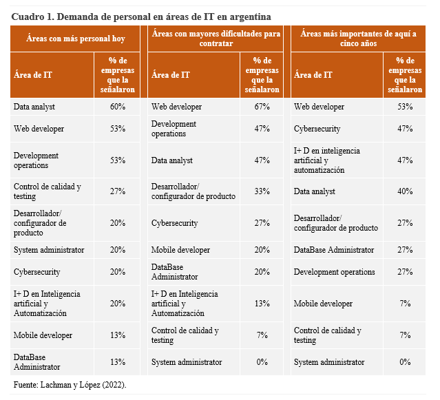 Lachman, J y López, A. (2022). Los servicios basados en conocimiento en Argentina: Tendencias, oportunidades y desafíos. Documentos del Plan Argentina Productiva 2030, N.º 34, agosto 2022.