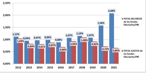 Gastos y recursos de los fondos fiduciarios en términos del PIB. 2012-2021