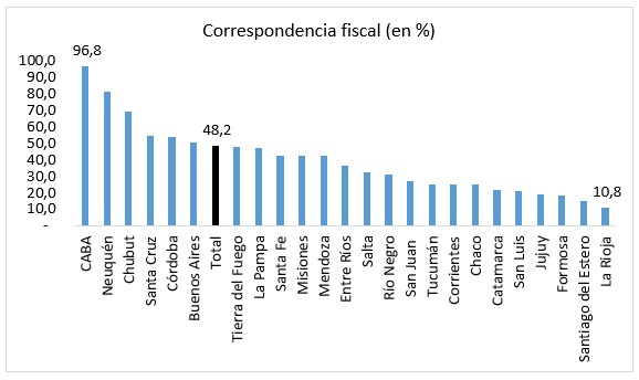 Esta estructura vertical tiene implícita una baja correspondencia fiscal. Existe una escasa relación entre la responsabilidad de gastar y de recaudar de los gobiernos subnacionales, lo que puede dar lugar a comportamientos irresponsables. Los individuos de las provincias con baja correspondencia fiscal no perciben los costos de aumentar el gasto público y lleva a que los políticos se comporten irresponsablemente.