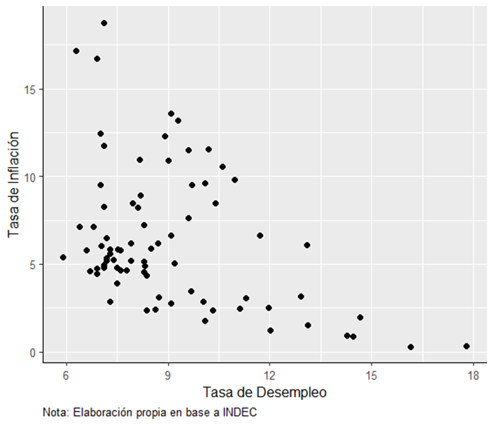 La estimación de curvas de Phillips que incorporen estas características y retomen el espíritu de su formulación original, en términos de contemplar la incidencia de la tasa de desempleo en lugar de la brecha del producto sobre la tasa de inflación, es la primera contribución de la presente nota.