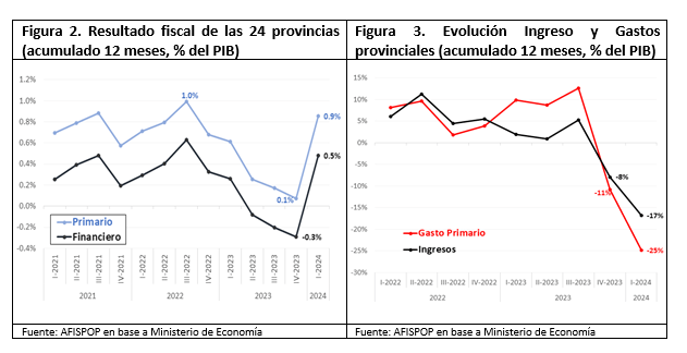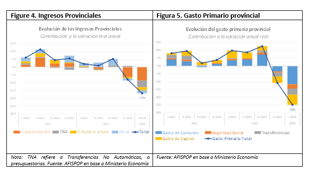 Mirando exclusivamente lo ocurrido en el primer trimestre de 2024 tanto por el lado de los ingresos como del gasto, se pueden apreciar algunas particularidades por provincia.